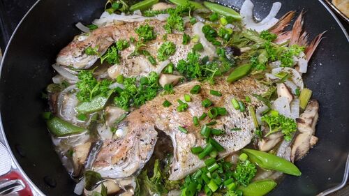 毎年、糸島では5月の頭に吾智網(ごちあみ)が解禁され鯛のシーズンが始まります。 初物の真鯛。 ヨメが「買ってきたけん、どうかしとって」と言います。 刺し身にするには小さいのでアクアパッツァを作ることにしました。 まず、ウロコを取りエラと内蔵を…