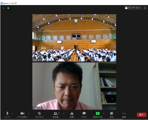 今日(9/11)の午後は熊本県のある高校でオンライン講演会。 1年生全員240名を体育館に集めある先生のPCをzoomでつなぎその画面をプロジェクターでスクリーンに投影し音声をスピーカーに繋いで一斉にそれを見せるという力技(笑)。 zoomで生徒さんたち全体…