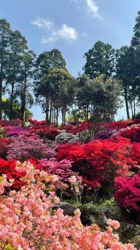 午後、天気が良かったのでふと思いついて『浮岳幸花樹園』へ。 1万坪の土地に約5千本以上のツツジ、ホンキリシマが植えられています。 現在、満開。 まぁ、思わず声が出るほどの絶景。 バラで有名な「浮岳ガーデン」にしてもそうだけど糸島のスゴイところは…